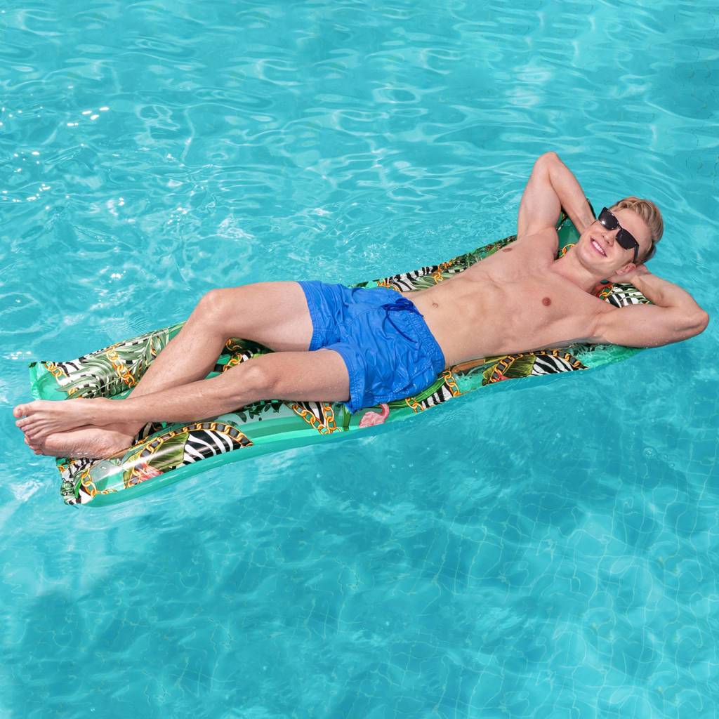 The mint beach mattress with a pink flamingo motif and zebra print catches the eye and stands out on the beach and by the pool. The colorful design emphasizes the holiday character and makes relaxing in the sun even more pleasant. It is an ideal choice for the garden, the lake, and for vacations.