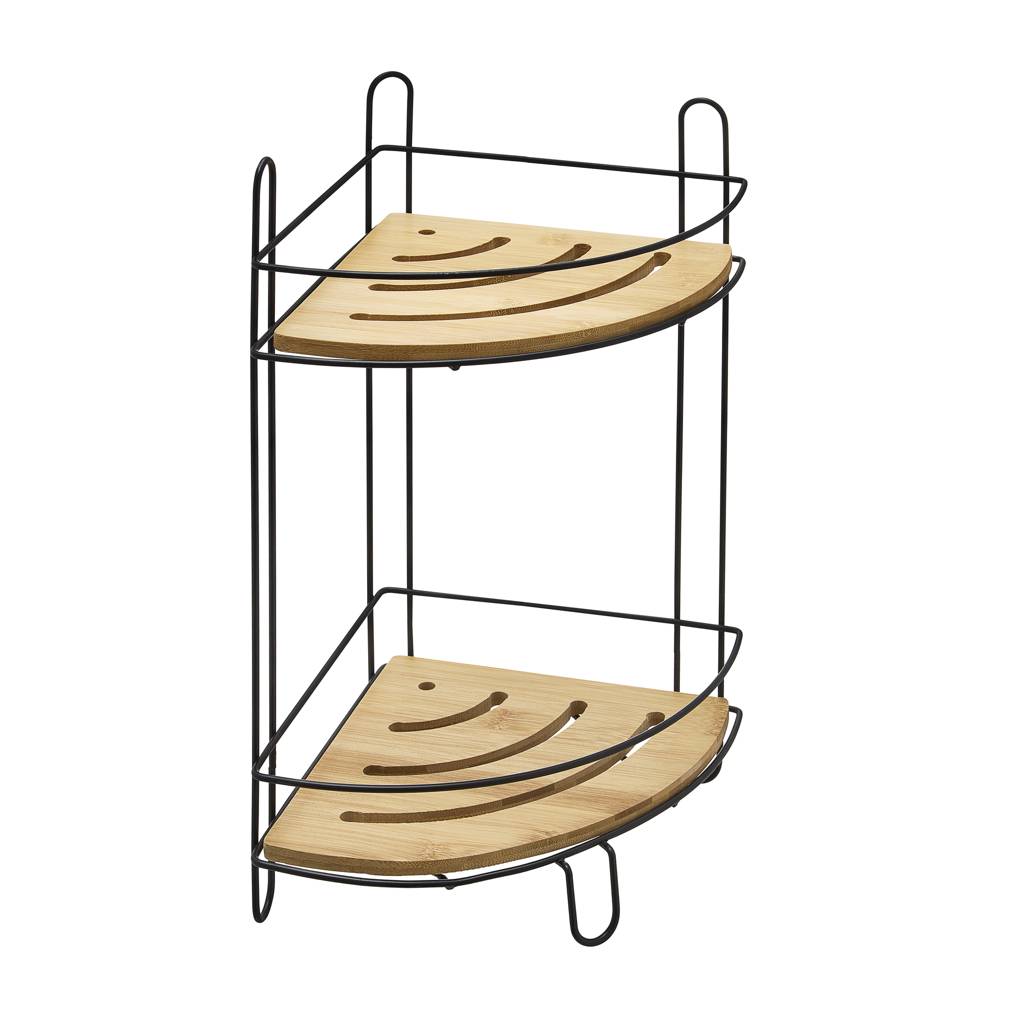 Practical, two-tier corner shelf for essential cosmetics and accessories. Ideal for the shower. It can be placed in the shower tray, as it has feet, or hung on the wall using screws and wall plugs (not included in the set). Thanks to the perforation on the bottom of the shelf, water can flow freely, preventing the formation of mold.