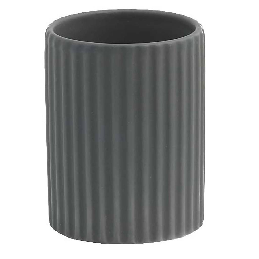 Bathroom tumbler Lavado in a deep, grey color is a practical accessory that will complete the decor of a modern bathroom. Made of durable dolomite ceramics, it is characterized by a vertical, ribbed pattern that ensures a secure grip and an attractive appearance. You can store toothbrushes, shaving accessories, or makeup brushes in it. The universal, minimalist style makes it blend perfectly with other elements from the Lavado series, creating a consistent and aesthetic bathroom arrangement.