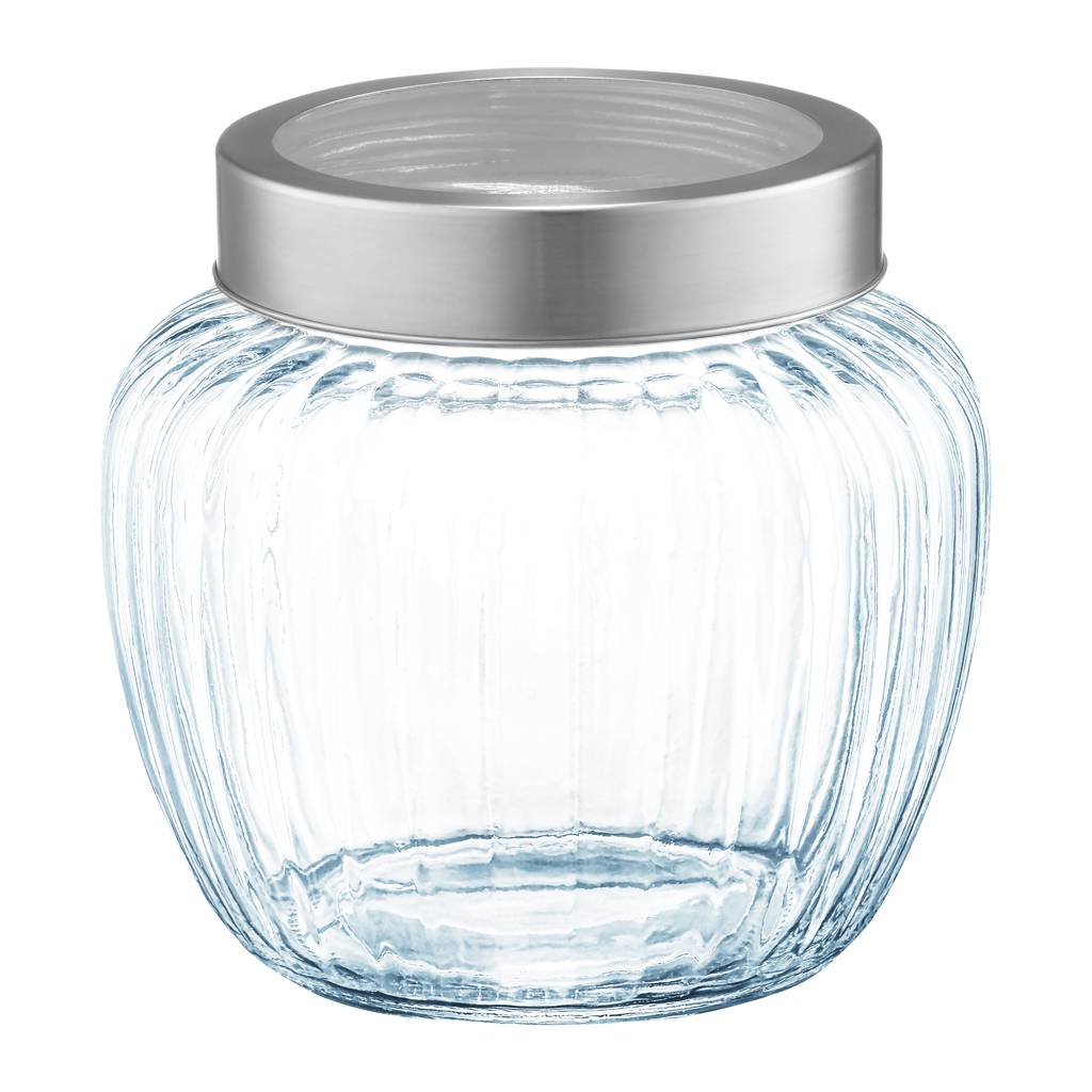 Glass kitchen container with a steel lid