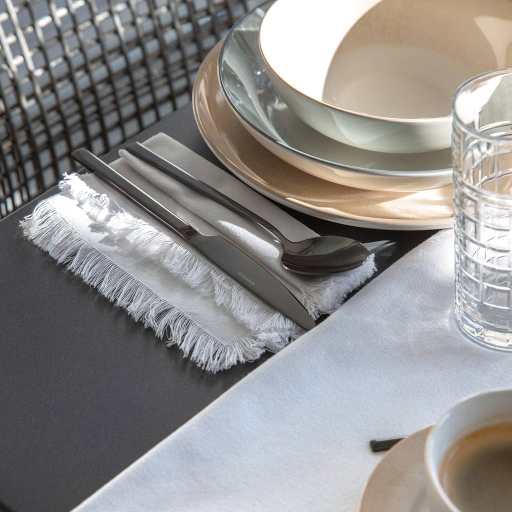 The placemat Pure is a light and universal table decoration element that works well both during daily meals and gatherings at the table. The delicate fabric structure inspired by bamboo fibers gives the material a natural look, and subtle tassels around the edges create a decorative finish. Thanks to its simple form, the placemat easily adapts to various interior styles – from Scandinavian to classic and modern.