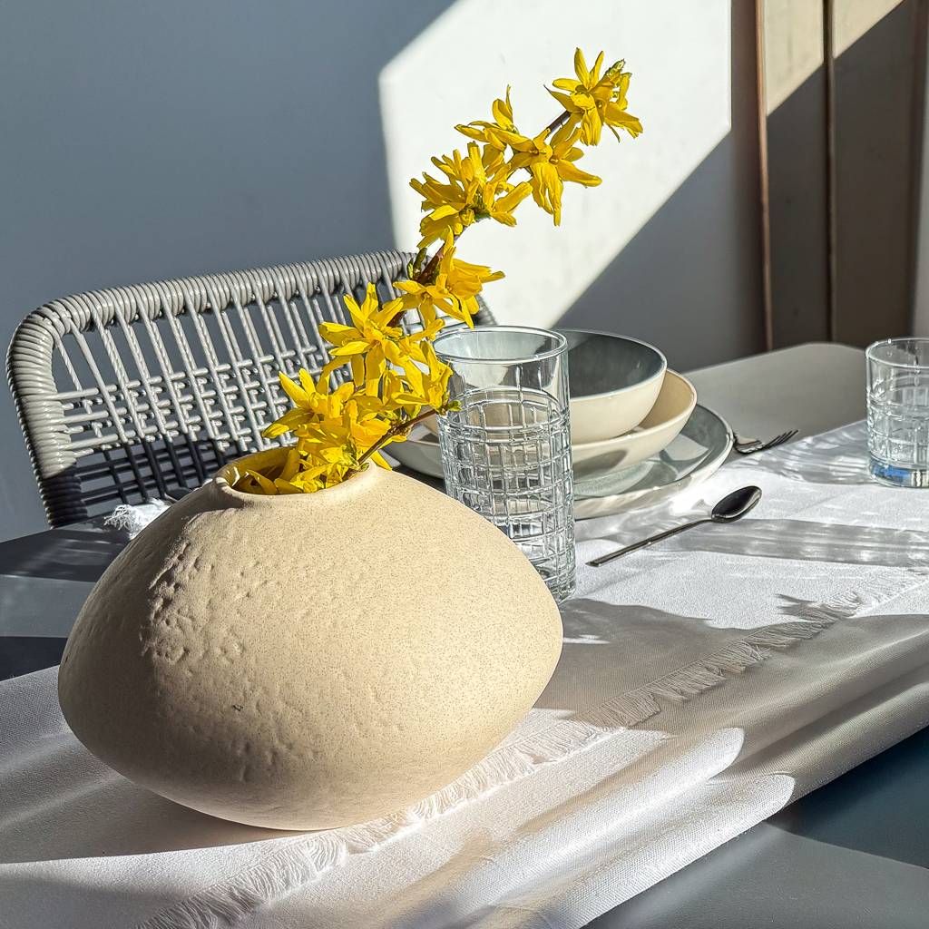 Its dimensions of 20 cm x 20 cm x 15 cm make it a great addition to small and medium flower compositions. The irregular, organic surface attracts attention and gives interiors an artistic expression. The vase fits perfectly into Scandinavian, modern and boho styles, emphasizing their cozy and natural character.