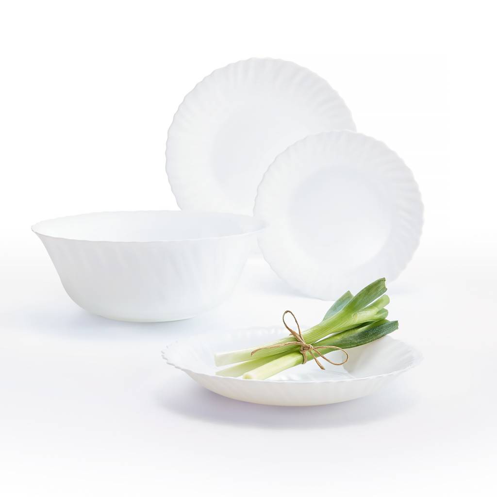 White tableware made of tempered glass