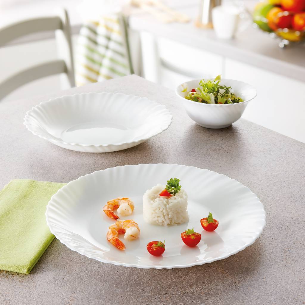 The key to the reliability of Luminarc brand products is advanced glass tempering technology. The thermal treatment process makes the dishes many times more resistant to shocks, impacts, and sudden temperature changes than standard porcelain. This material is completely non-porous, which means it does not absorb odors or dyes from food, remaining 100% hygienic and easy to keep clean for years of use. The design of the Feston line is distinguished by a delicate, wavy rim, which gives the dishes lightness and a unique character, combining traditional form with modern functionality.