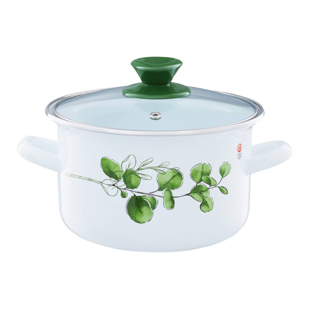 Enamelled pot with lid Eucalyptus EMALIA OLKUSZ