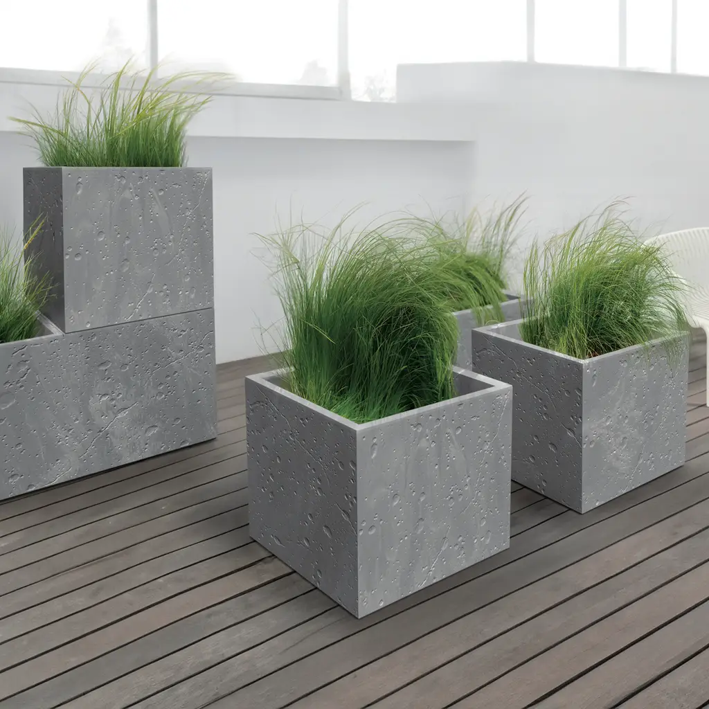 The pot Sierra Square Beton Effect is a modern and elegant solution for lovers of minimalist arrangements. The square shape and texture imitating concrete give it an industrial character, which will work perfectly both in outdoor spaces, such as terraces and gardens, and in interiors, e.g. in restaurants, offices or shops. The pot was designed with functionality in mind – the stacking system facilitates storage, and the solid construction ensures durability and resistance to various conditions. It is an ideal choice for creating impressive compositions and defining zones in greenery arrangements.