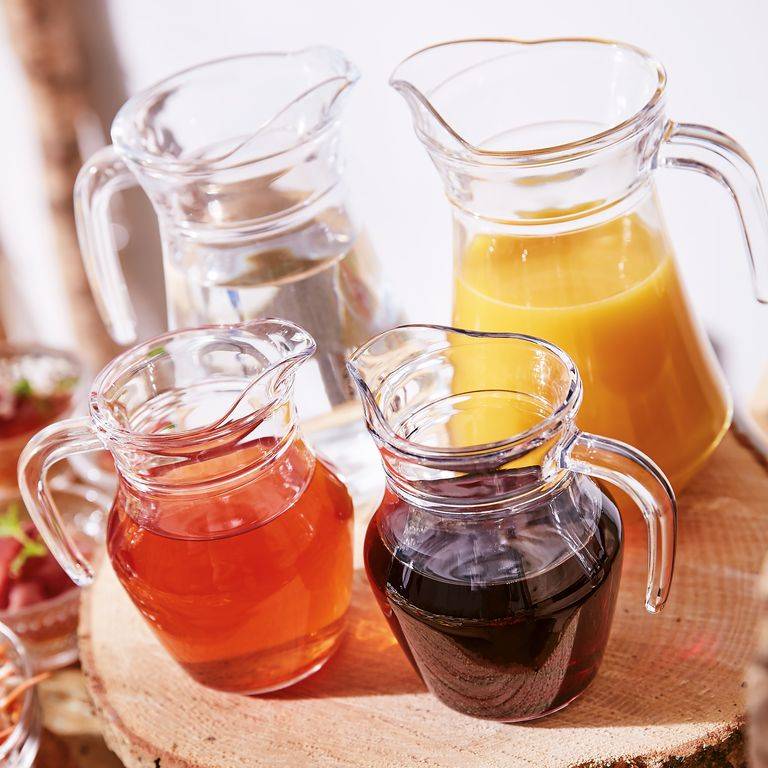 A practical jug for daily serving of drinks, which will work well during meals and meetings at the table. The transparent form allows you to conveniently serve water, lemonade, or juices, emphasizing their freshness. It is a universal solution for every kitchen.