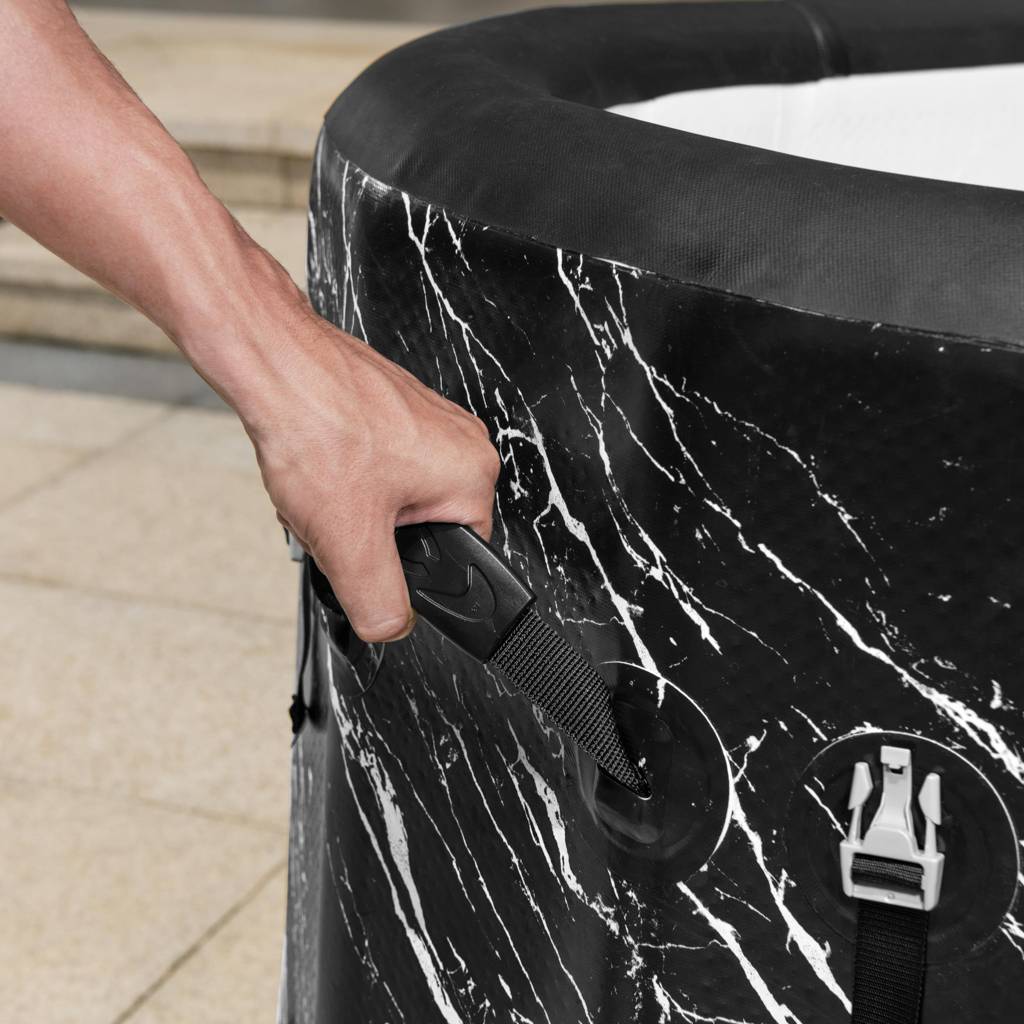 Discover the extraordinary benefits of ice bathing with the oval cold bath tub Lay-Z-Spa Glacial Dip™. Thanks to advanced technology and thoughtful design, this tub combines functionality, durability, and comfort of use. High-quality FortiFiber™ and Polar-Shield™ materials ensure resistance to harsh weather conditions, and its mobility means you can use it both on the terrace and in the garden. The set includes a transport bag, making carrying and storing the tub extremely convenient. Lay-Z-Spa Glacial Dip™ was designed to meet the expectations of even the most demanding users. Rigid walls made of FortiFiber™ provide lightness and stiffness, and the manual pump allows you to inflate the tub in just 5 minutes. The reinforced Tritech® cover with safety clips protects the water from contamination and temperature loss, and the drain valve with a tube makes it easy to empty the water after bathing.