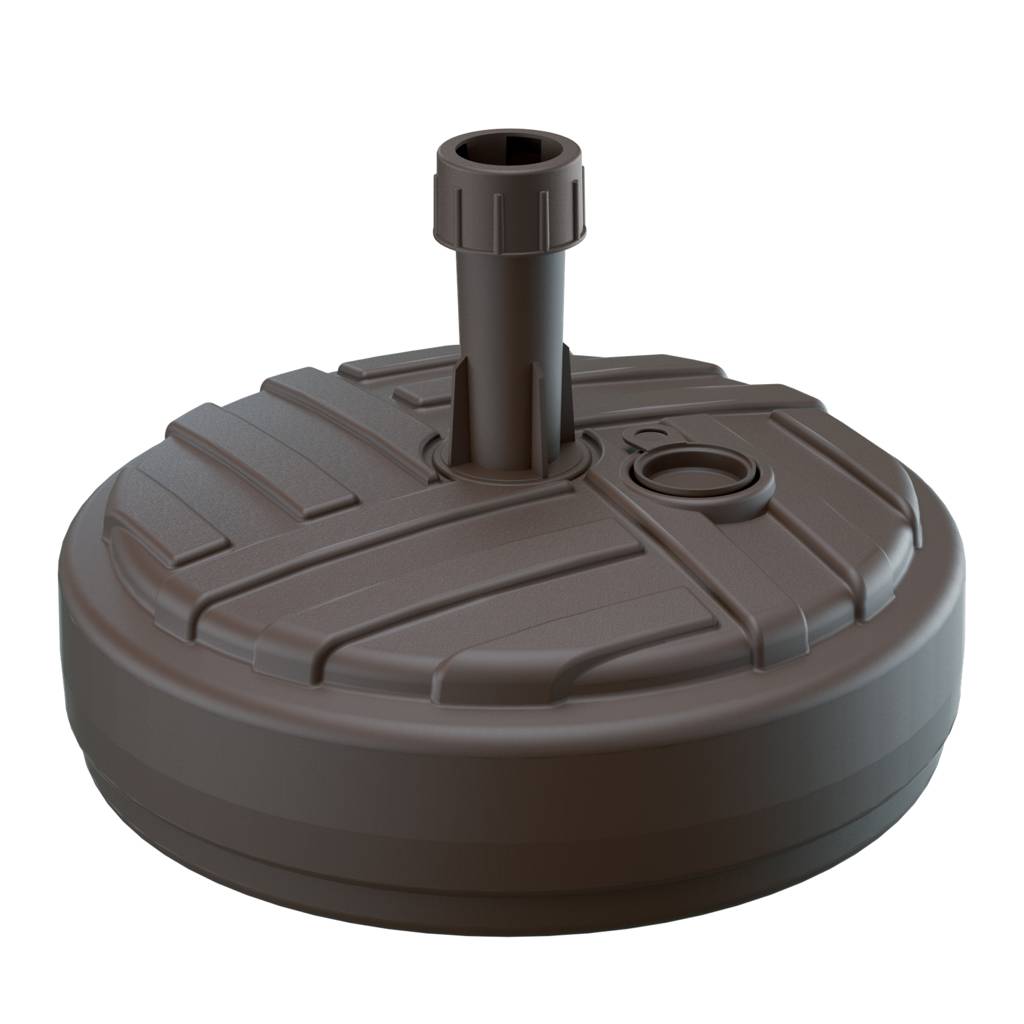 The parasol base is made of durable plastic resistant to atmospheric factors, which ensures its long life. The 39 cm diameter guarantees an appropriate support surface, and the possibility of filling it with sand with water or gravel allows for increasing the stability of the structure. The universal stem allows for fitting most parasols available on the market. The simple form facilitates use and makes the base work well in various outdoor spaces.