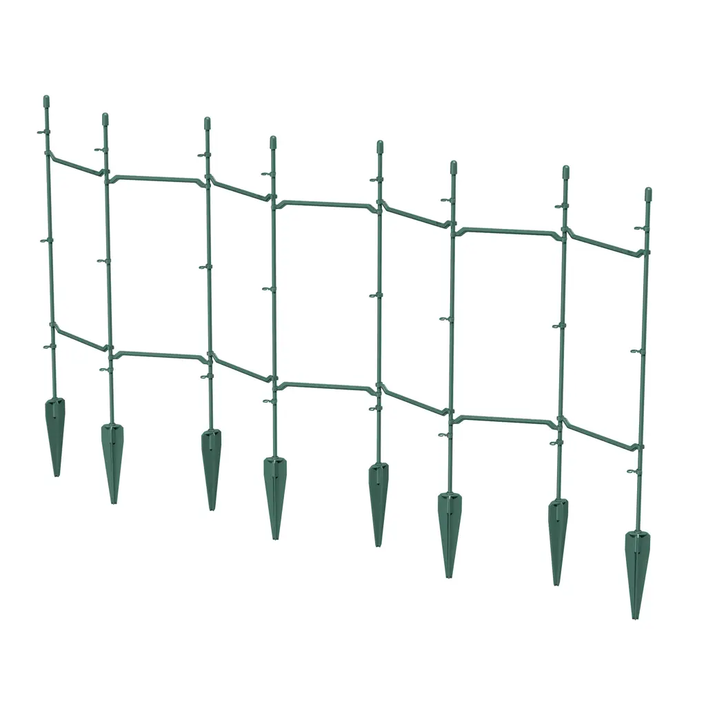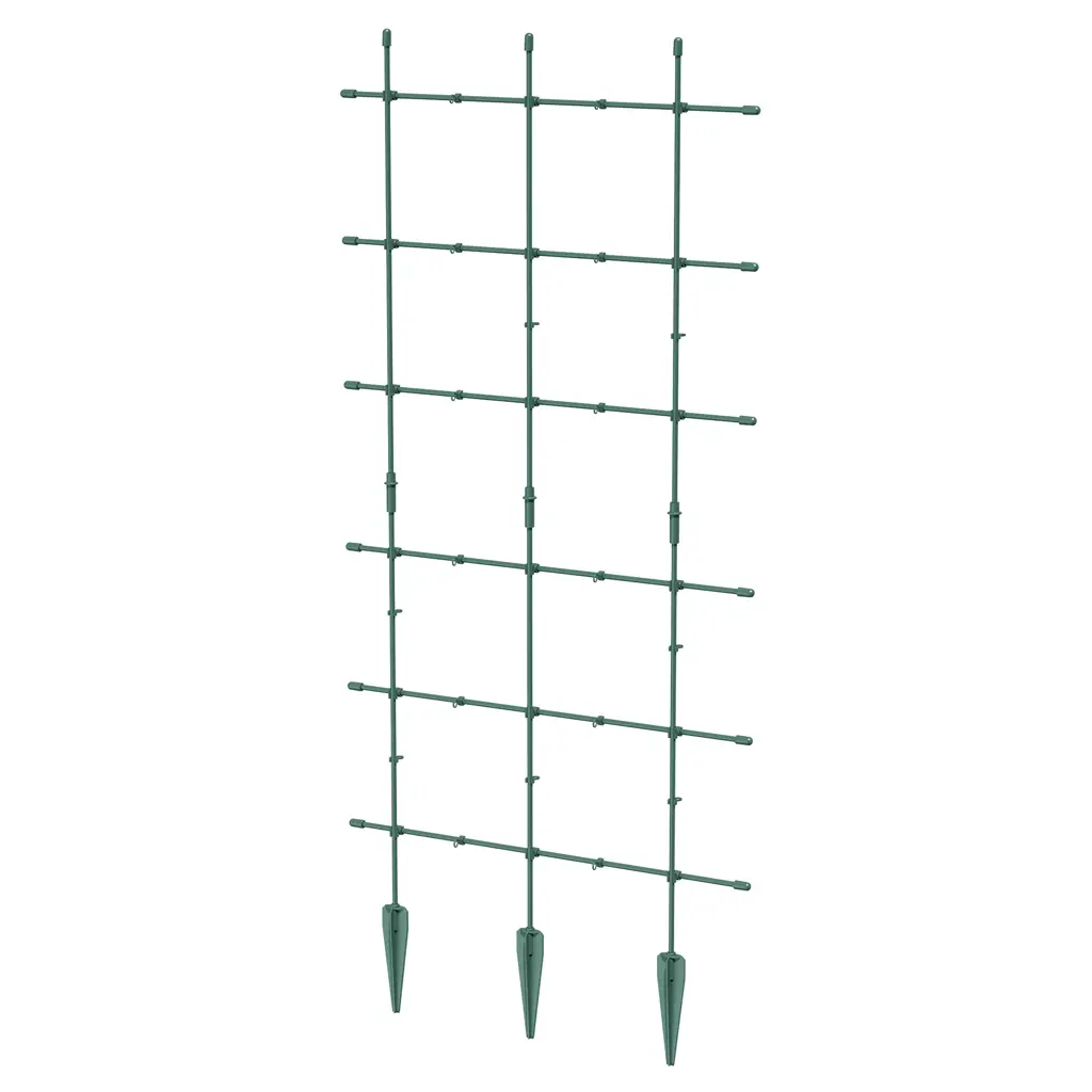 The support for climbing plants Floo Supports is a functional set that allows for the creation of one of three different structures supporting plants. The first variant is a vertical structure measuring 60x120 cm, ideal for tall climbing plants such as roses or ivy. The second option allows for building three separate fences measuring 60x60 cm, and the third variant offers a fence structure measuring 120x60 cm. The product is perfectly suited for plants such as wisteria, clematis, green peas, or nasturtium, providing them with solid support and enabling healthy growth.