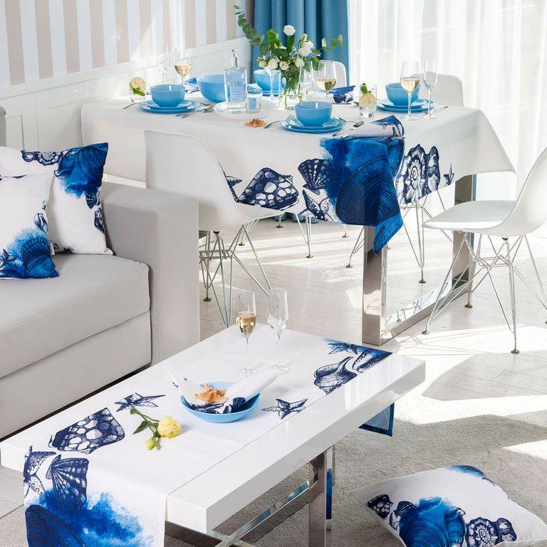 The ocean-inspired pattern introduces a fresh and natural accent to the table arrangement.