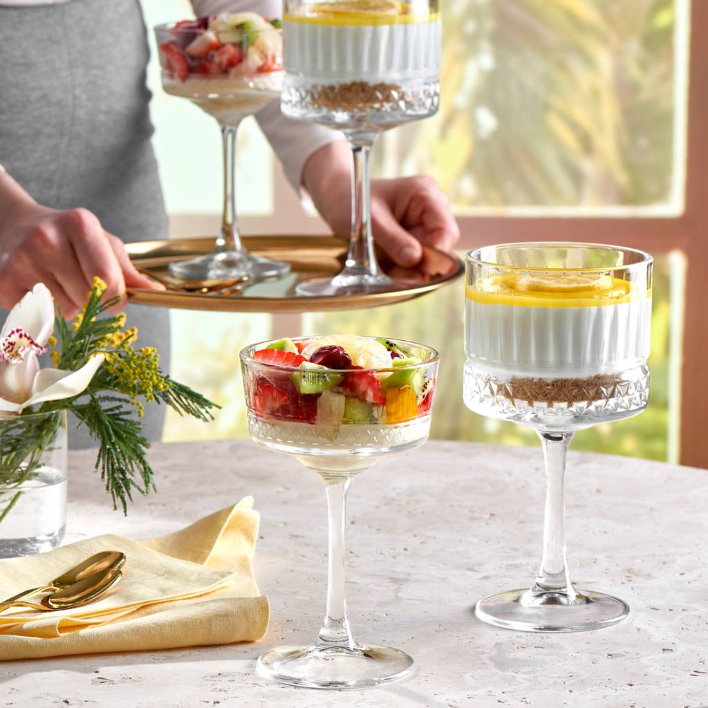 Glasses from the Elysia collection were made of glass with decorative embossing inspired by classic crystals. Precise decorations combined with a proportional bowl support the proper presentation of wine, and the slender stem ensures comfort of holding. The larger capacity allows the aroma of the drink to develop freely, which will be appreciated by both home users and gastronomy.
