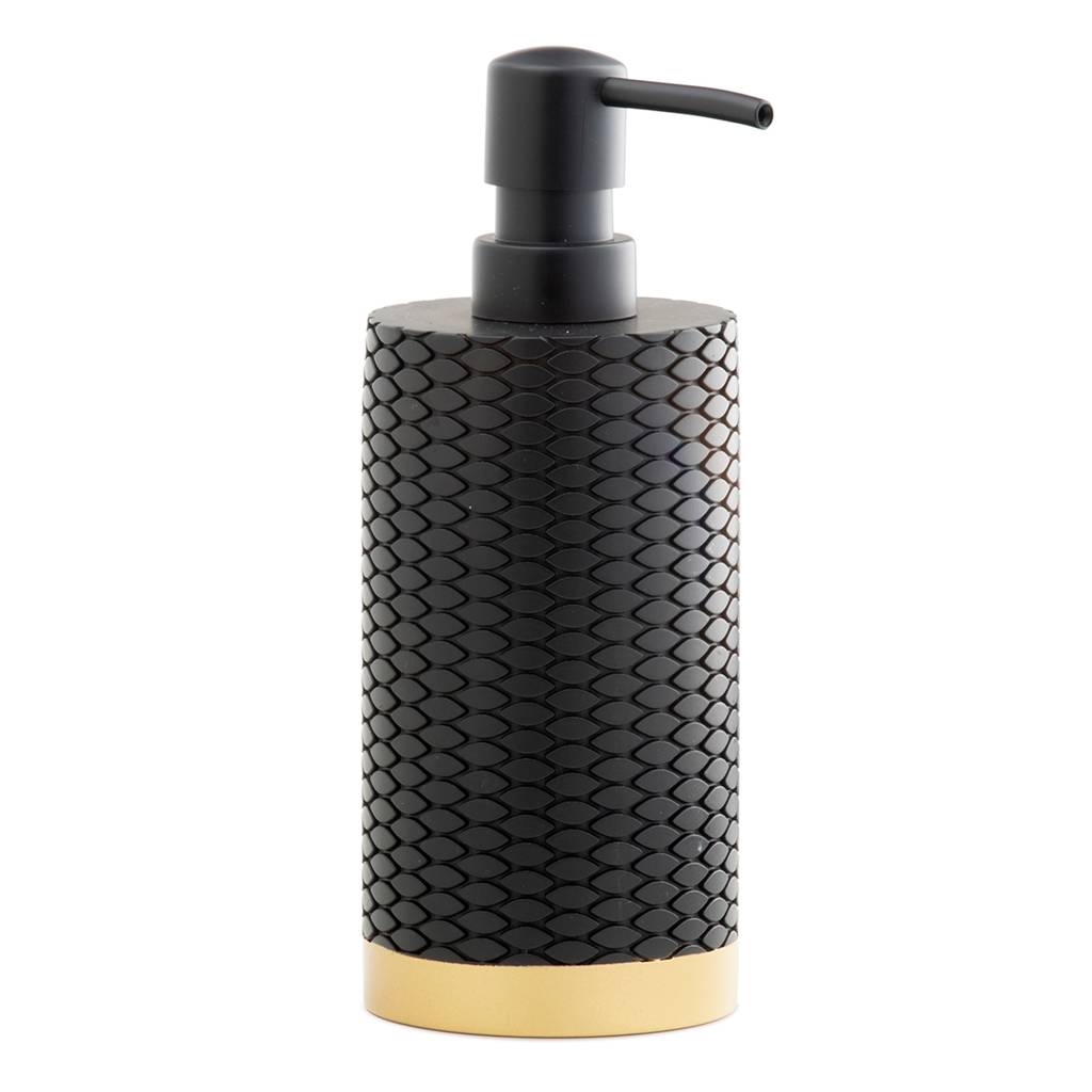 Discover the combination of modernity and extraordinary design in our soap dispenser. Its unique form and original grooving, which resembles the shape of a fish scale, make it not only a functional but also a unique decorative element for every bathroom and kitchen. The black and gold colors add elegance and emphasize its unique character. What is more, the soap dispenser is made of polyresin. This material is extremely easy to clean, solid and durable, which guarantees long-term use without losing its original shine.