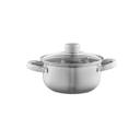 The practical sizes of the pots make the set suitable for a variety of cooking needs. They are made of stainless steel, with a mirror finish on the inside and a satin finish on the outside. The lids are made of toughened glass.