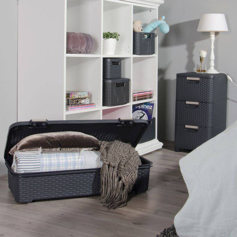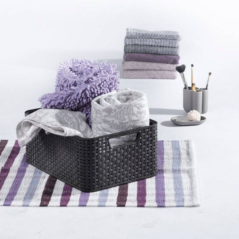 The Rattan Style S series was made of moisture-resistant plastic, making it suitable for use in the kitchen and bathroom. The design inspired by rattan weave combines aesthetics with functionality, supporting the storage of textiles and small accessories. Integrated handles make it easy to carry, and the proportions of the basket allow for convenient placement in cabinets and on shelves. The availability of several sizes allows for adjustment to individual needs and the creation of consistent sets.
