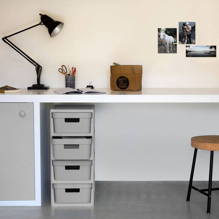 The Infinity rack is made of high-quality moisture-resistant plastic, making it perfect for rooms with variable temperatures and increased humidity. The stable frame and four pull-out drawers provide convenient access to stored items, and the smooth interior of the containers protects fabrics from snagging and damage. The use of wheels increases the mobility of the furniture and facilitates cleaning the space. The simple, modern form makes the rack with drawers fit harmoniously into various interior arrangements. The model is available in various color variants, allowing it to be matched to individual preferences and the style of the room.
