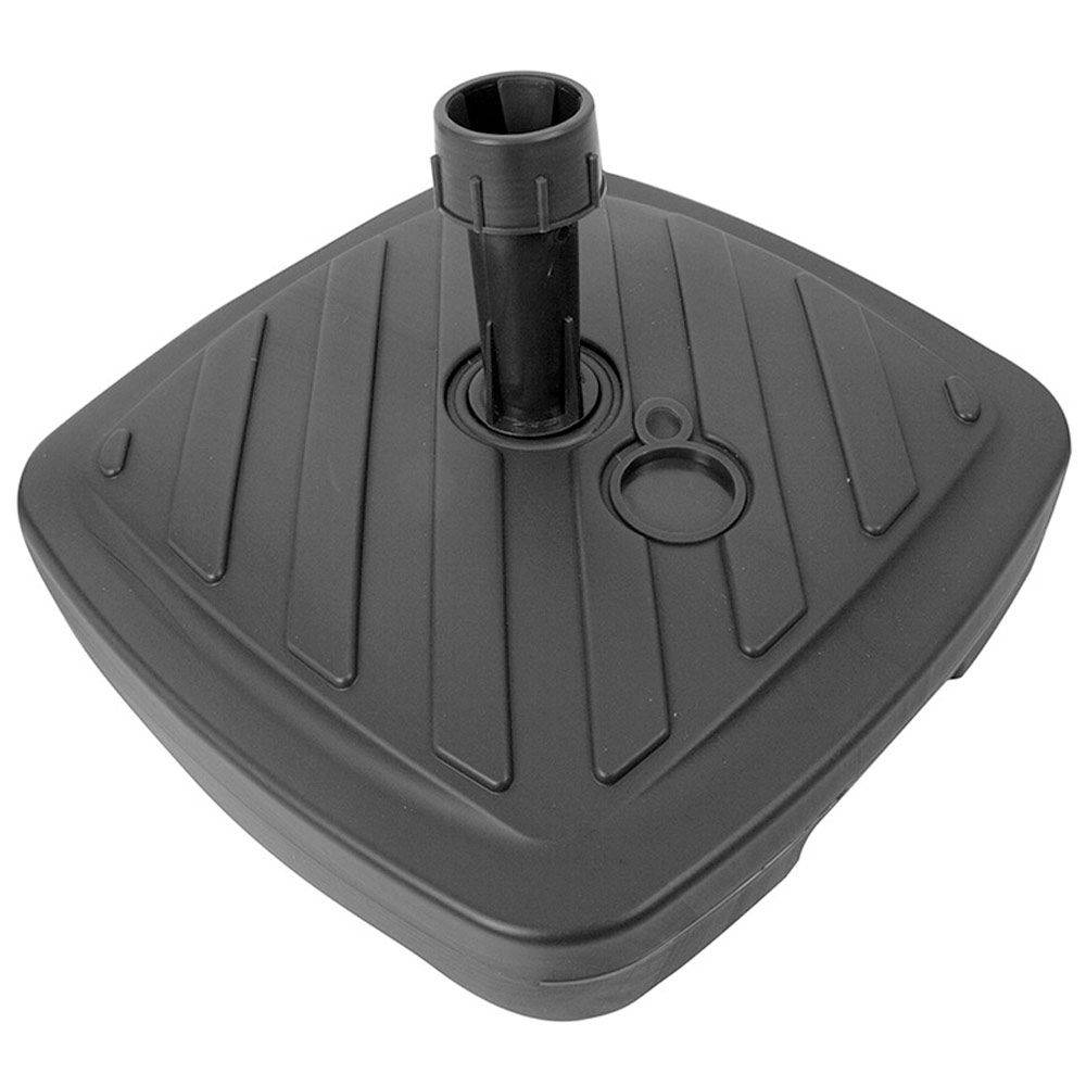 The umbrella base is made of durable plastic, which combines lightness with resistance to external conditions. The 12-liter capacity allows the base to be filled with water or sand, which significantly increases its stability during use. The adjustable stem allows the diameter to be adapted to various umbrellas, and compatibility with tubes up to 2 cm ensures wide application. The simple design facilitates assembly and daily use, and the possibility of emptying the base allows for convenient carrying and storage.