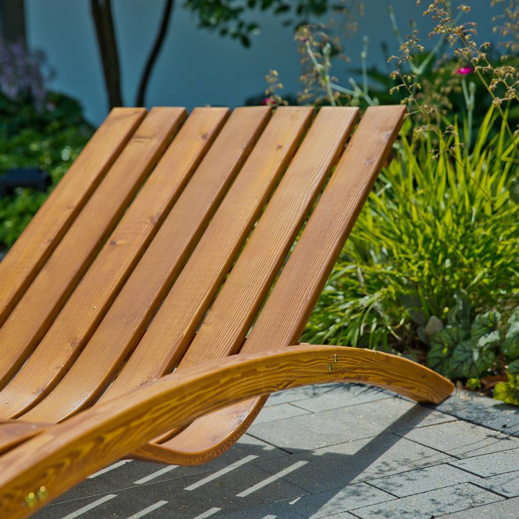 The lounger is made of durable larch wood, which stands out for its good resistance and natural appearance. The surface has been protected with oil, which supports the durability of the material and facilitates its care. The contoured design of the seat adapts to the body, increasing the comfort of use, and the stable form ensures safety during rest. The whole has been designed for use in the garden and on the terrace, maintaining functionality and a consistent look in various arrangements.