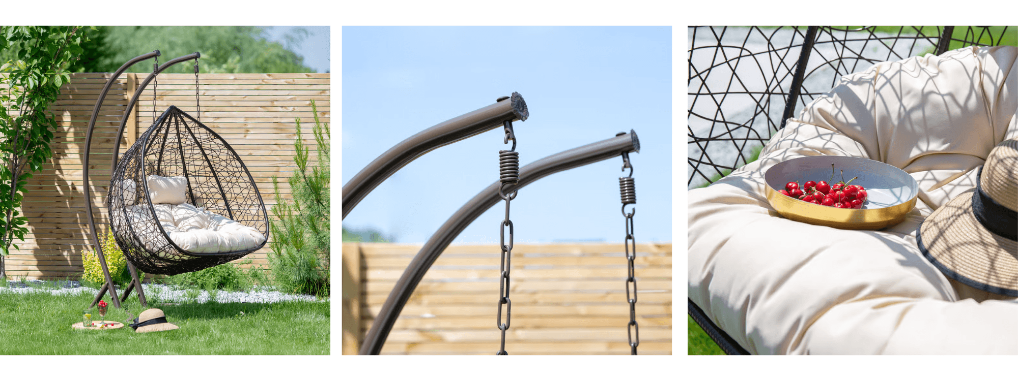 If you decide on a hanging chair without a frame, you must ensure its correct and safe installation. Hanging chairs are usually sold in two versions: