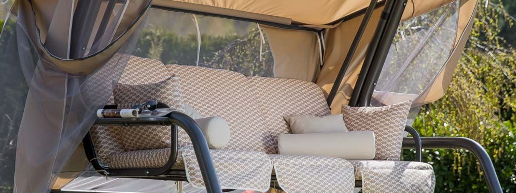 Remember that when you start your pleasant, relaxing adventure with your new garden swing, you want it to last as long as possible. We know this, and we make sure that your place of comfortable relaxation serves you both today and in the distant future. You can be sure that as a manufacturer, we will provide fast and efficient service. We also offer the possibility of purchasing consumable elements. These include, among others, canopy frames, adjustment clutches, and cover material. You can restore your swing to full usability if these elements are damaged, e.g., during strong winds and intense gusts (when you do not have time to secure them). Among the available accessories, we also offer additional equipment such as tables and mosquito nets. Seasonally, you can also change the look of your swing by choosing from many available patterns and colors of cushions.